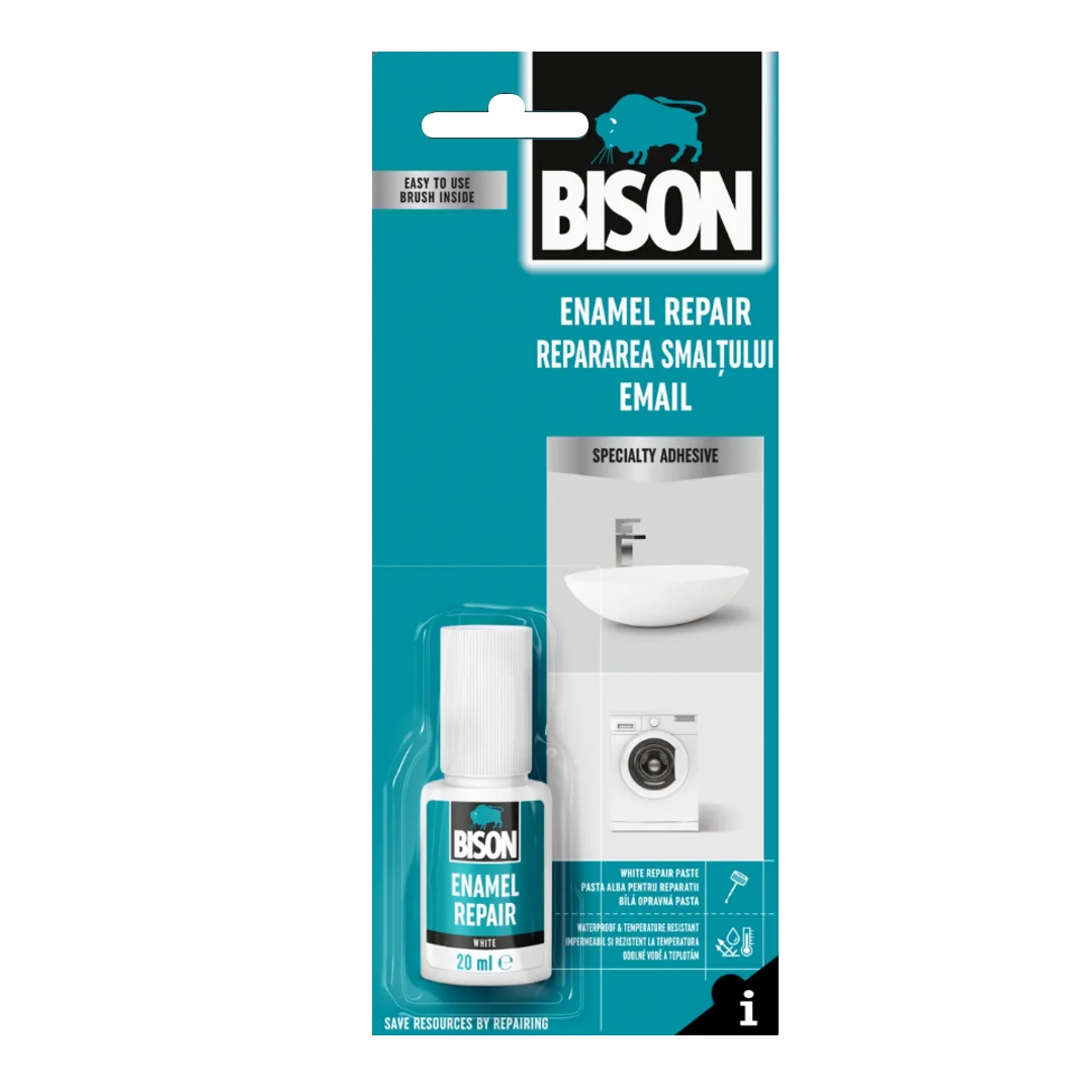 Υγρό Κόλλας/Σμάλτο Bison Enamel Fix 20ML, με βουρτσάκι για καλύτερη εφαρμογή, για εμαγιέ και άλλες λευκές επιφάνειες, αδιάβροχη και με αντοχή σε υψηλές θερμοκρασίες.