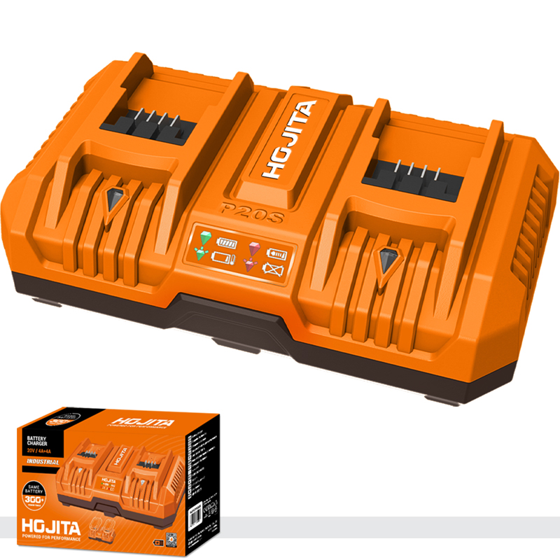 >Τάση:220-240V~50/60Hz >Τάση εξόδου:20V >Ρεύμα εξόδου:4A+4Α >Φορτίζει ταυτόχρονα 2 μπαταρίες 4Ah σε 1 ώρα >Βάρος: 0.96Kg