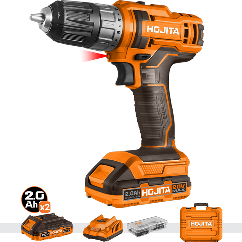 **Δραπανοκατσάβιδο Μπαταρίας Hojita 20V (2×2.0Ah)** Το δραπανοκατσάβιδο μπαταρίας Hojita 20V συνδυάζει ισχύ και ακρίβεια για όλες τις ανάγκες βιδώματος και τρυπήματος. Με μέγιστη ροπή 45Nm και δύο ταχύτητες (0-400 / 0-1500rpm), είναι ιδανικό για ευέλικτες εφαρμογές. Διαθέτει πλαστικό τσοκ 0,8-10mm, 15+1 ρυθμίσεις ροπής και κλείδωμα άξονα για σταθερή απόδοση. Το εργαλείο διαθέτει ενσωματωμένο LED φως για καλύτερη ορατότητα σε σκοτεινά σημεία. Το σετ περιλαμβάνει 2 μπαταρίες 2.0Ah, φορτιστή και 47 εξαρτήματα, όλα συσκευασμένα σε πρακτική βαλίτσα για εύκολη μεταφορά.