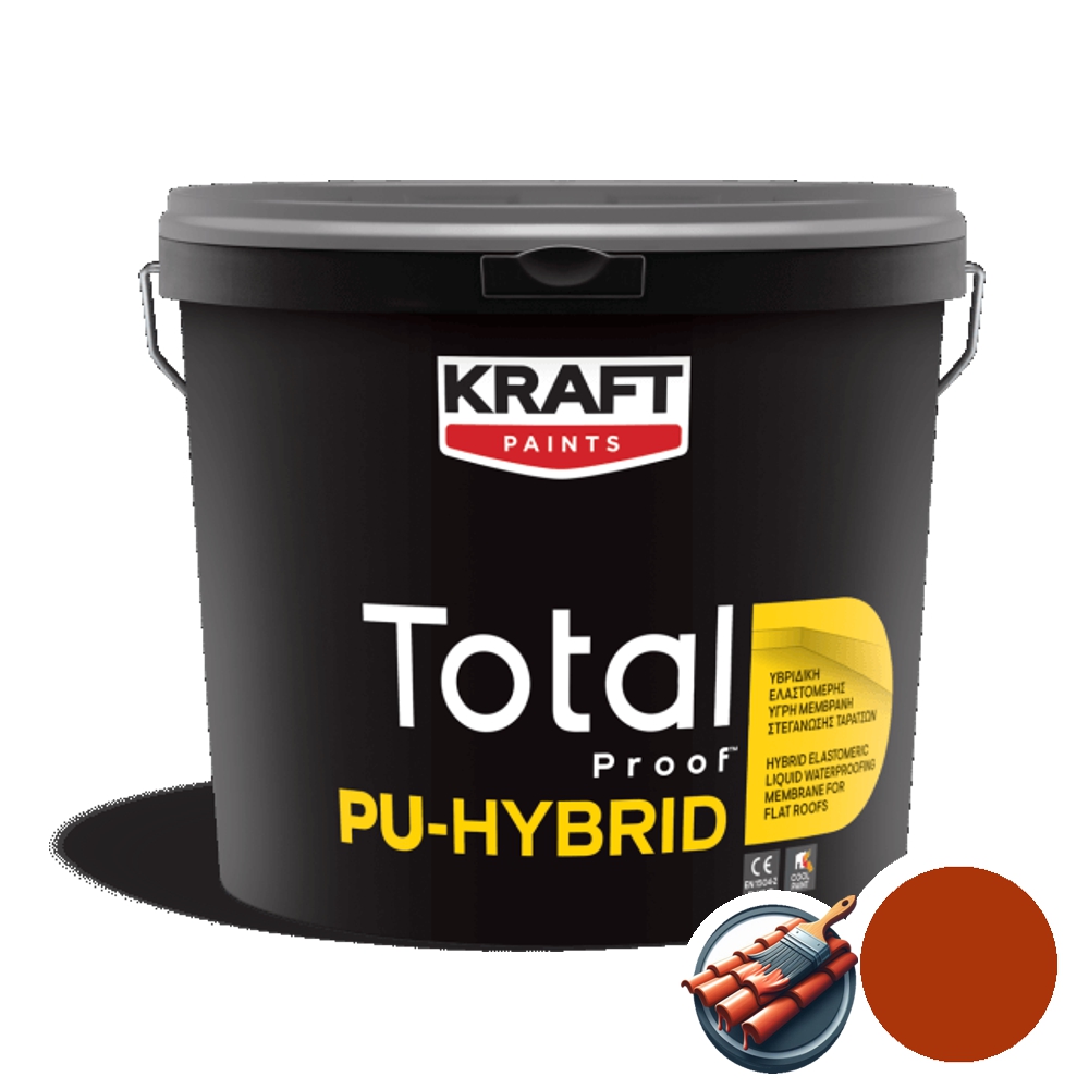 Το Total Proof PU-HYBRID είναι μία υβριδική ελαστομερής υγρή μεμβράνη στεγάνωσης ταρατσών υδατικής διασποράς με ρητίνες ακρυλικής και πολυουρεθανικής βάσης. Η προηγμένη σύνθεσή του, προσδίδει ομοιόμορφο αποτέλεσμα, εξαιρετική εργασιμότητα, αντοχή στα λιμνάζοντα νερά και εξαιρετικές μηχανικές αντοχές. Παράλληλα η νέας τεχνολογίας ρητίνες παρέχουν εξαιρετική αδιαβροχοποίηση, ελαστικότητα και μεγάλη αντοχή στις καιρικές συνθήκες.